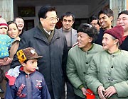 中共中央总书记、国家主席、中央军委主席胡锦涛于2月5日至6日深入到灾情严重的广西山区农村和担负抗灾救灾重任的基层单位,实地了解保交通、保供电、保民生的落实情况,慰问灾区各族干部群众,给大家带来党中央、国务院、中央军委的深切关怀和新春祝福。[