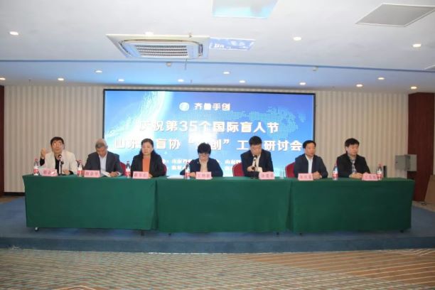 10月24日至27日,山东省盲协庆祝第35届盲人节暨“双创”工作研讨会活动在临沂举行。中国盲协副主席、山东省盲协主席汤建泉,省残联主席团秘书处王纳新主任、综合服务中心副主任霍军红,临沂市残联副理事长宋庆富、兰山区残联理事长陆金华,山东建筑大学无障碍研究中心执行主任王克旭、临沂大学化工系书记郭金平,琅琊志愿者协会会长宋勇等出席活动开幕式,与来自全省十七地市的盲协主席、特邀代表一起共同庆祝盲人节,为全省盲人群体创业发展出谋划策。