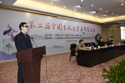 2015年10月18日,全国第二届盲人文学“嘉年华”会议在湖北宜昌召开,交流会上,一位盲人代表山东省盲协所做的《创新文化载体,切实推进盲人文化事业发展》的汇报发言,引起中国残联、中国盲协领导及与会专家的高度关注,他就是中国盲协文艺委员会理事、临沂市盲协副主席、沂水县盲协主席王福德。当人们把视角转移至他身上时,分明看到了一个盲人自强不息,自助助人的感人历程。