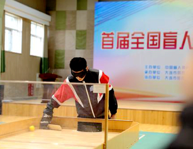 盲人板铃球是一项适合盲人开展的对抗性球类项目,其主要器材为球桌、球拍和球。比赛时,两名运动员分立球桌两边,努力通过不同技术去击打球进入对方球门,努力阻止球进入本方球门。自1977年创造以来,全世界已有30多个国家正式开展了该运动项目。作为承办方之一的大连盲聋学校既是国际盲人体育联合会盲人板铃球分会授权的亚洲第一个盲人板铃球发展中心,也是国内最早开展盲人板铃球项目的机构。2016年至今,我国部分省市残联、盲校已开展起这项运动的教学活动,受到盲人朋友的欢迎。比赛为各代表队搭建了交流和学习的平台,增强了盲人群体对板铃球运动的了解和参与热情,促进了盲人板铃球运动的规范开展。